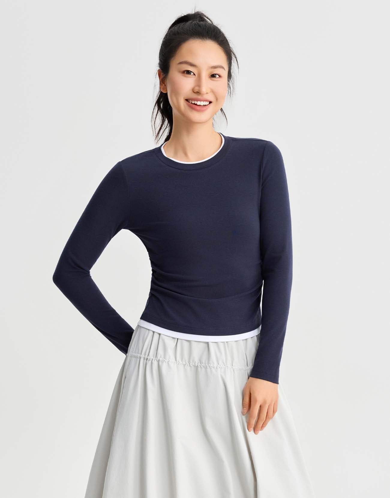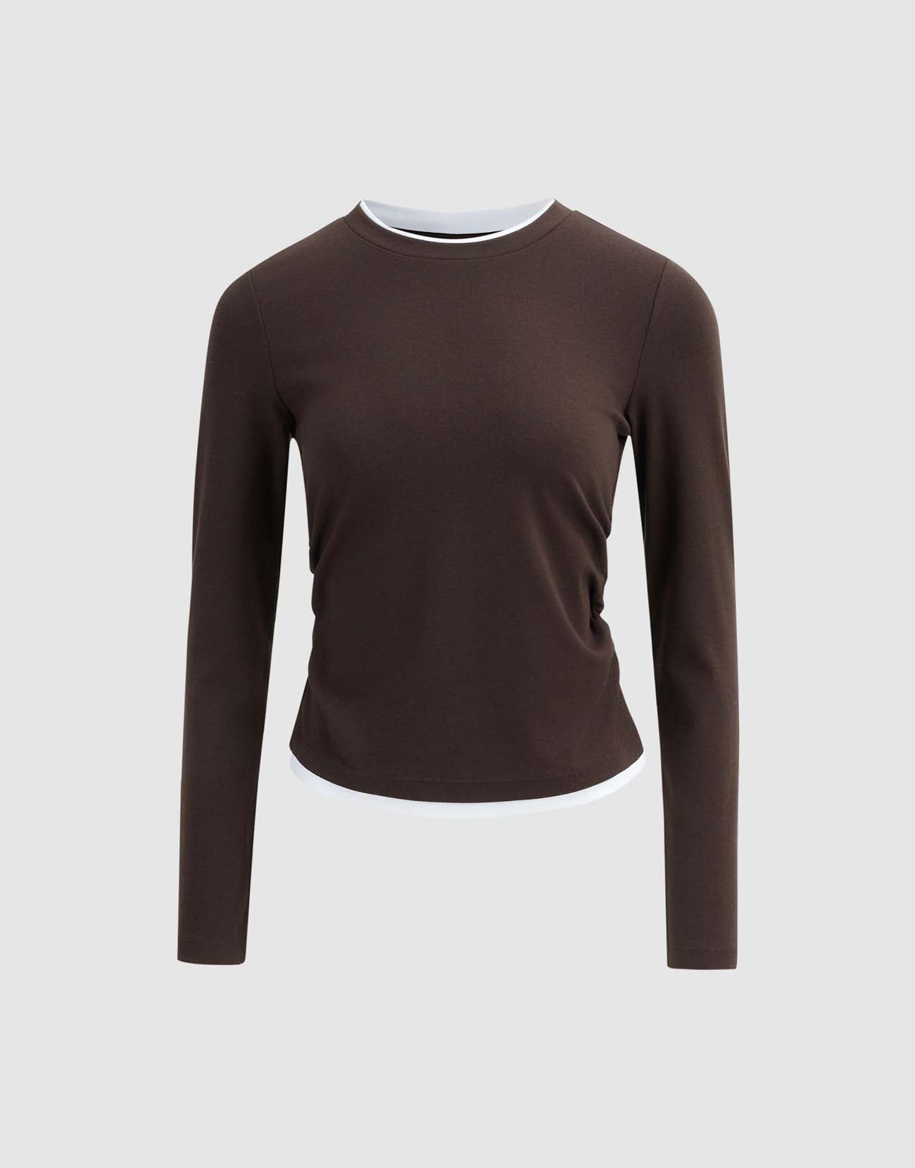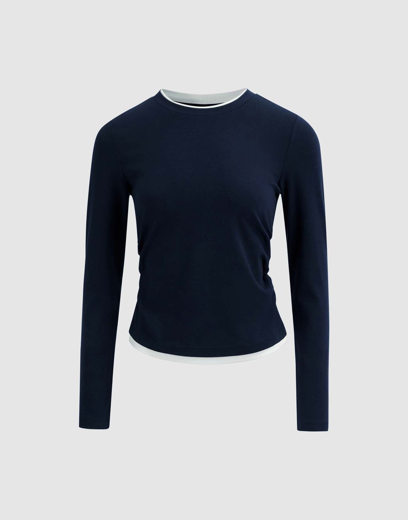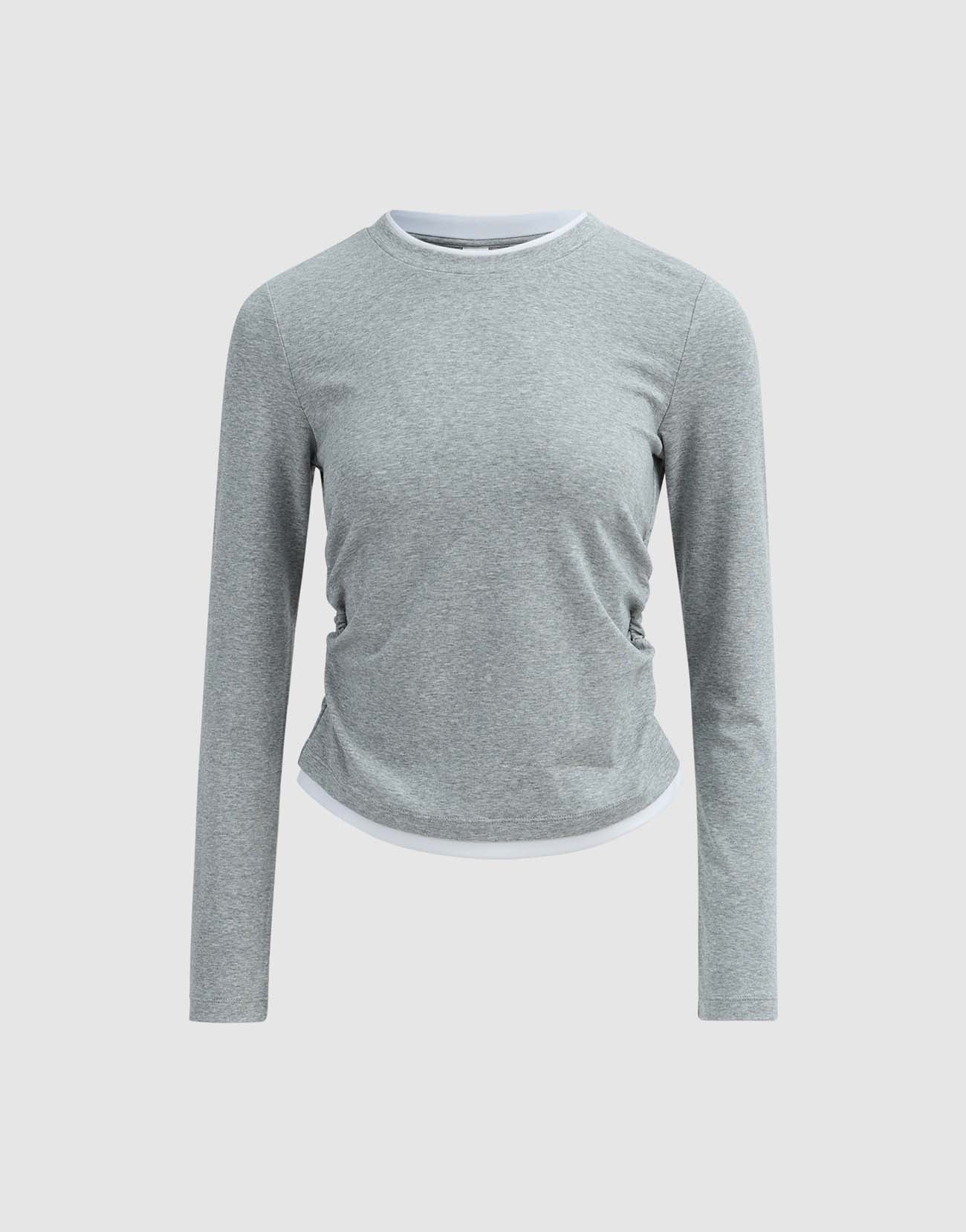 2 In 1 Gathered Waist Long Sleeve T-Shirts