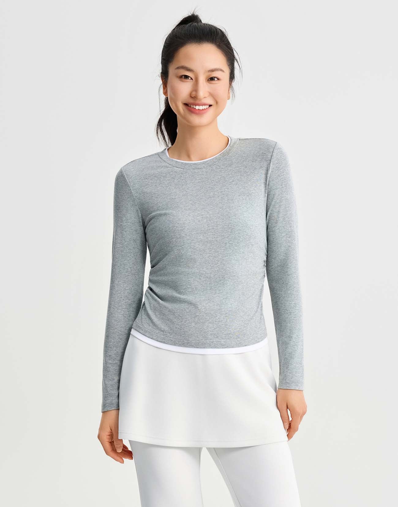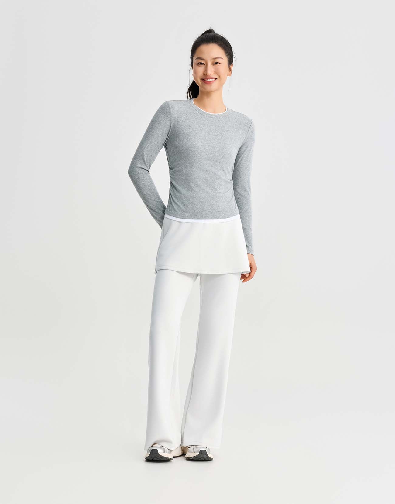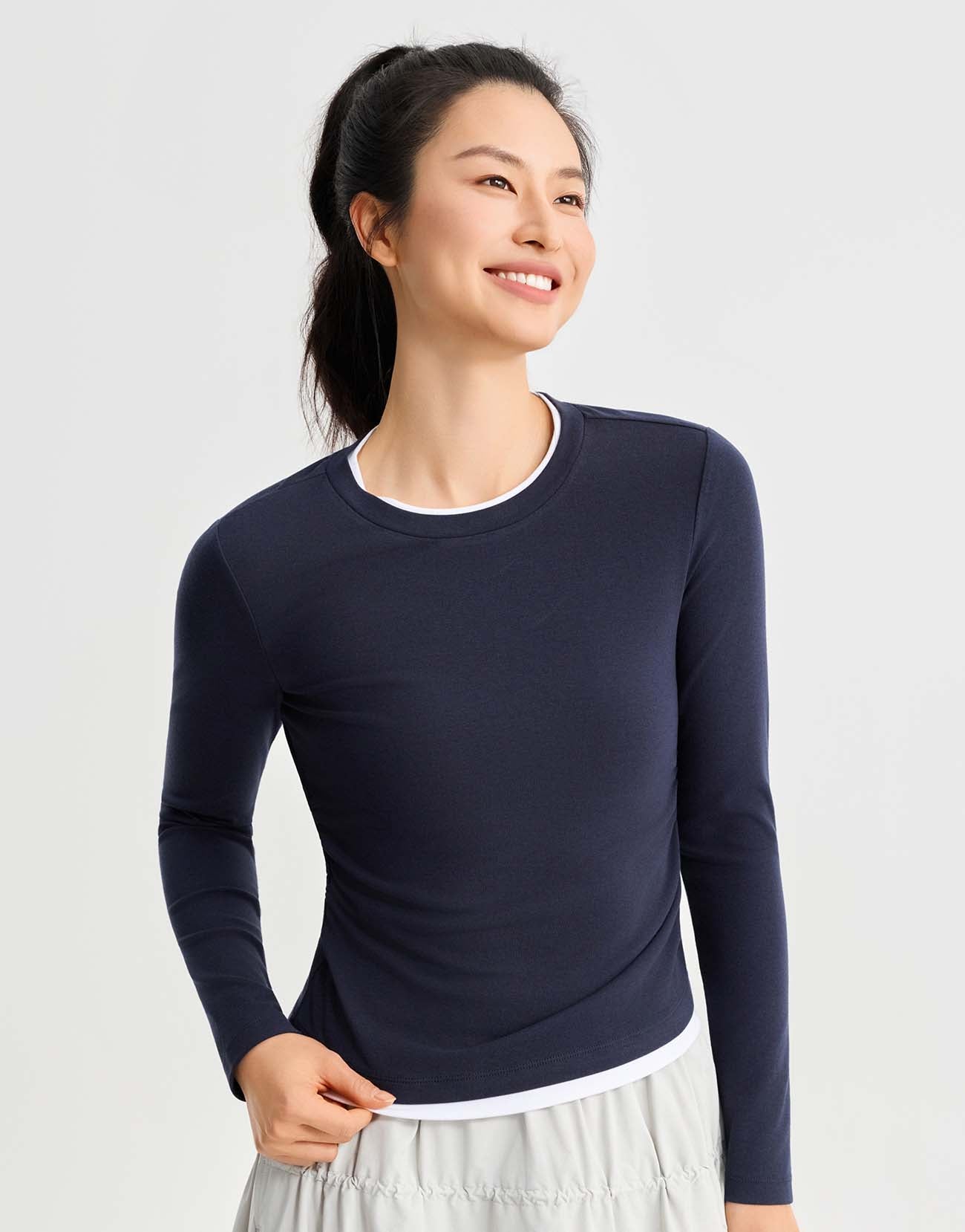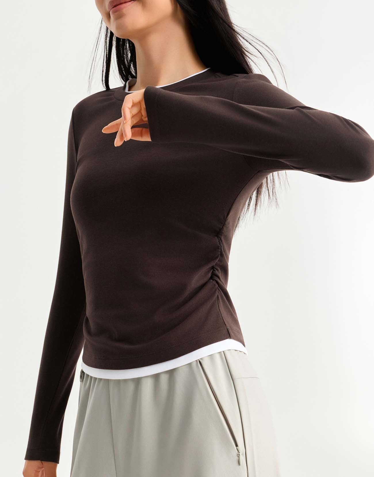 2 In 1 Gathered Waist Long Sleeve T-Shirts