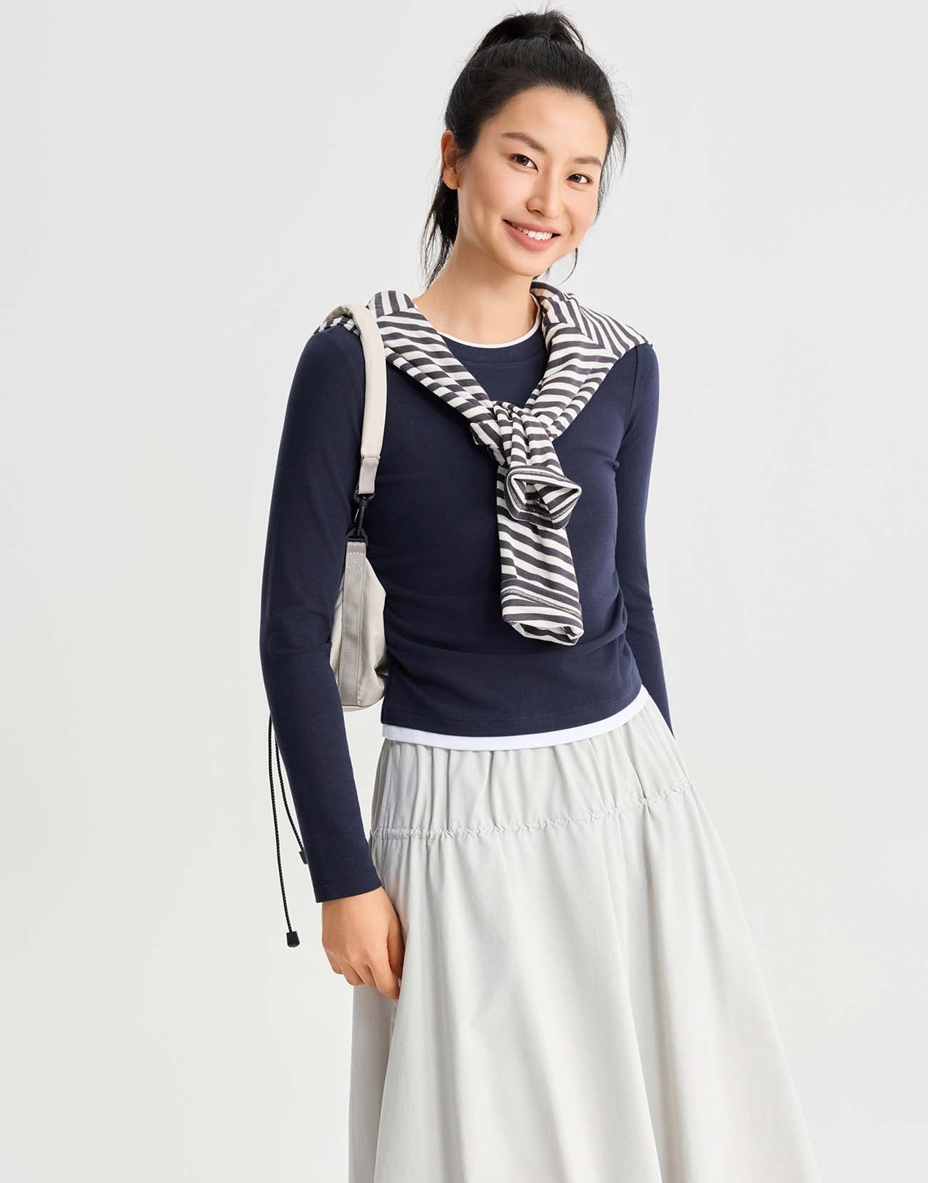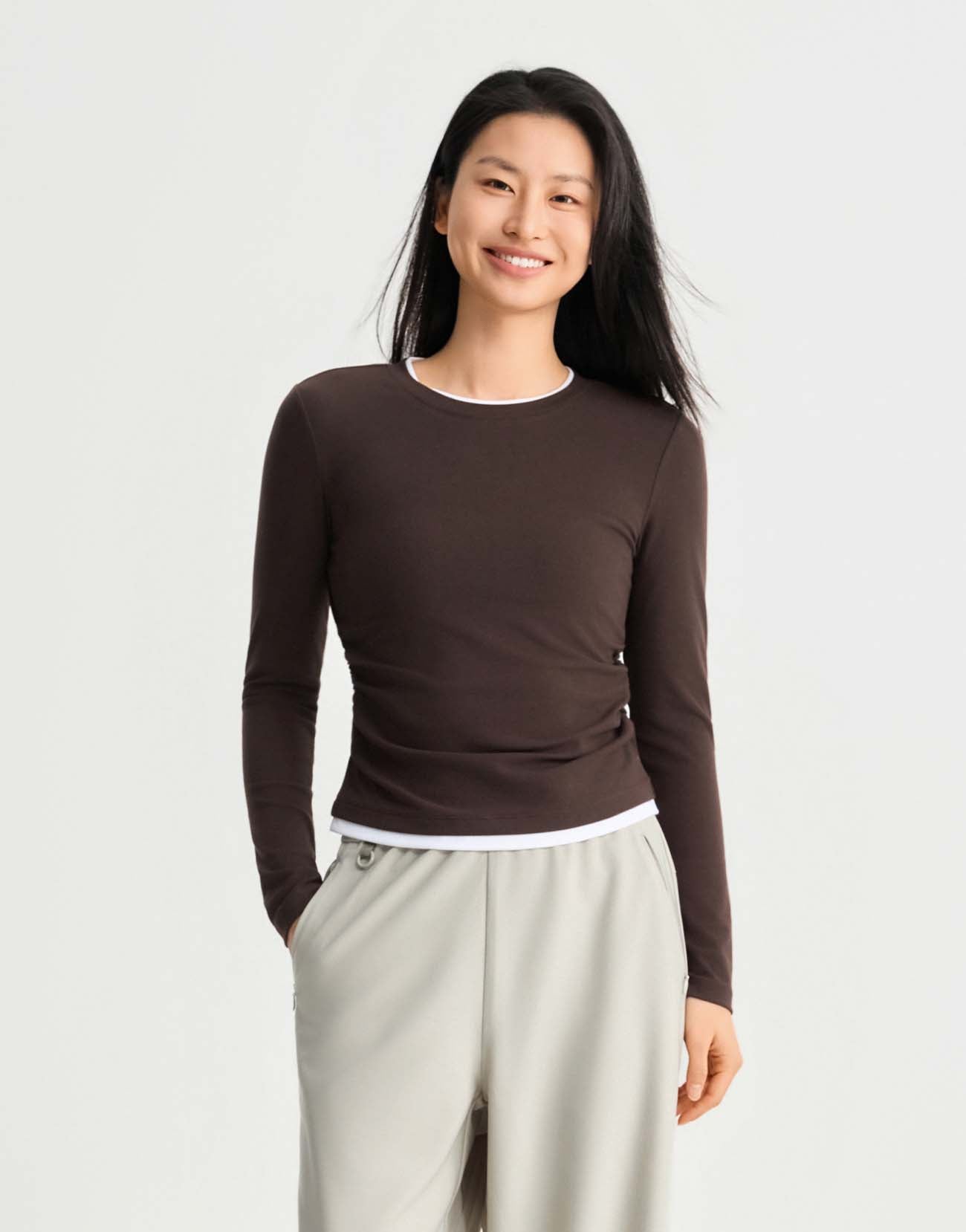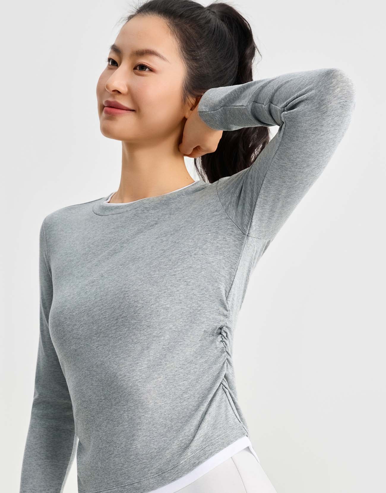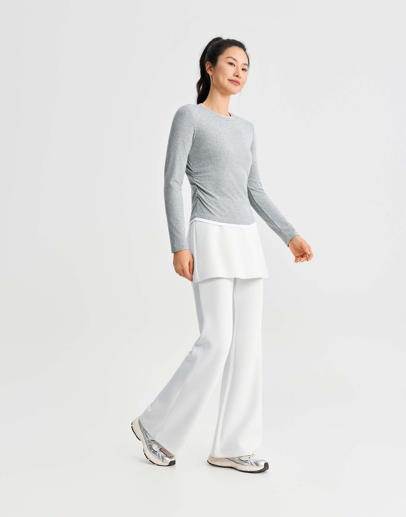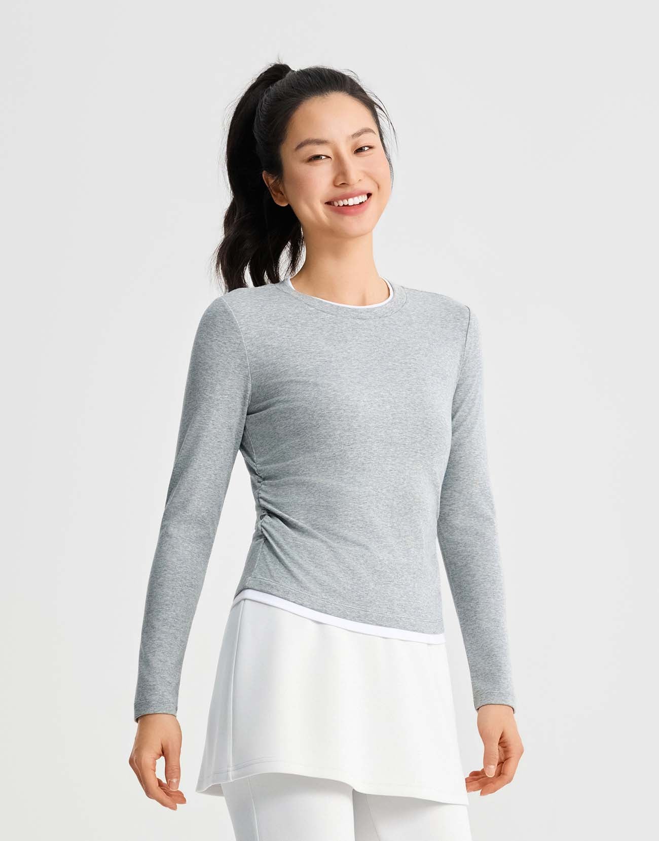 2 In 1 Gathered Waist Long Sleeve T-Shirts