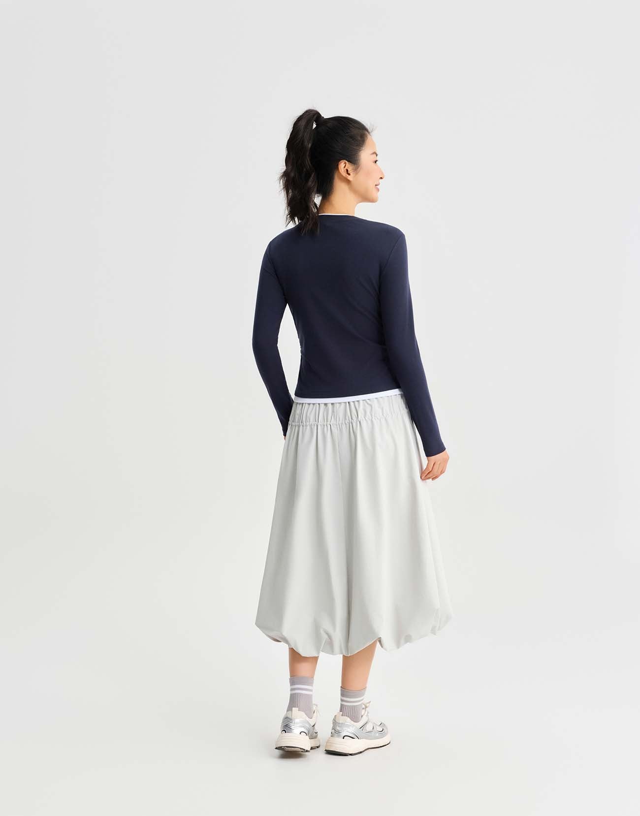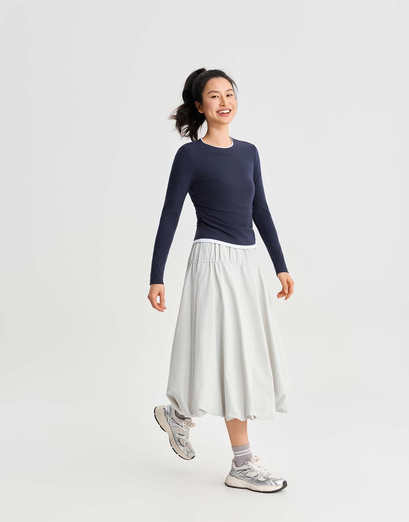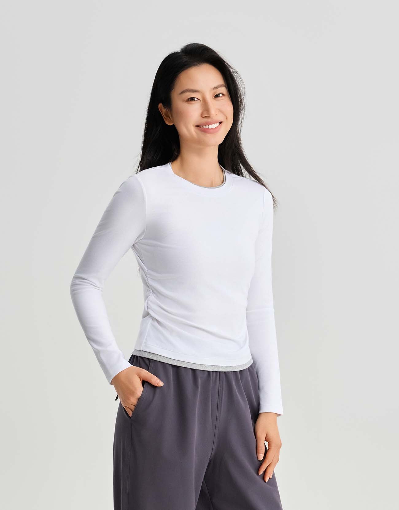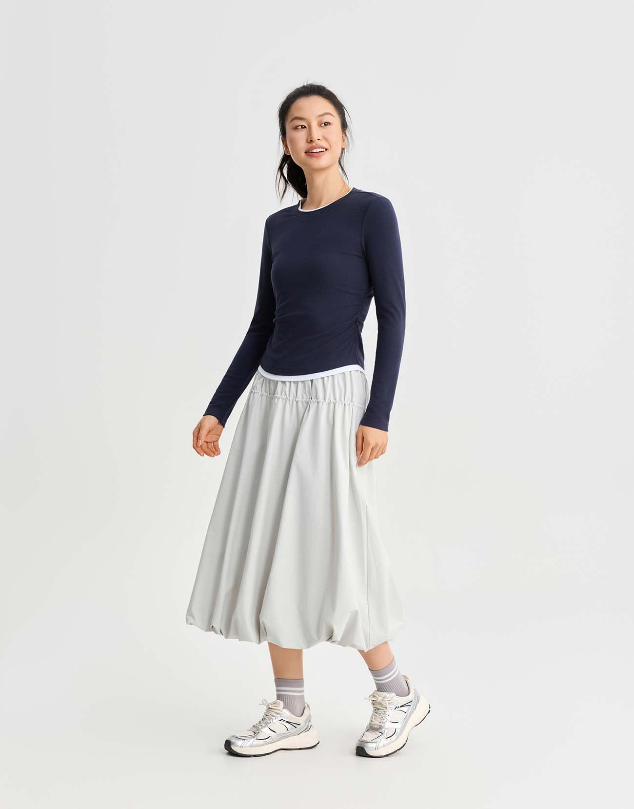 2 In 1 Gathered Waist Long Sleeve T-Shirts
