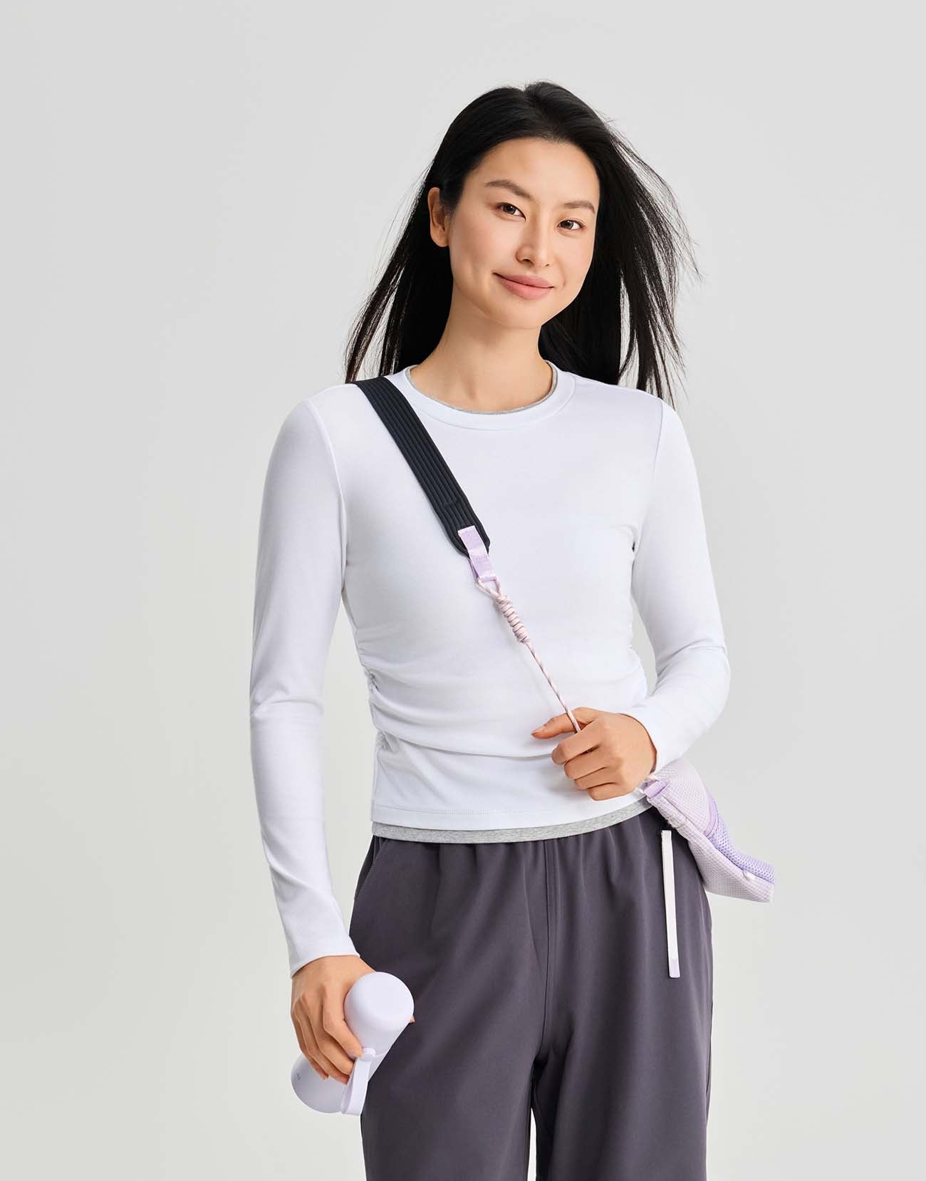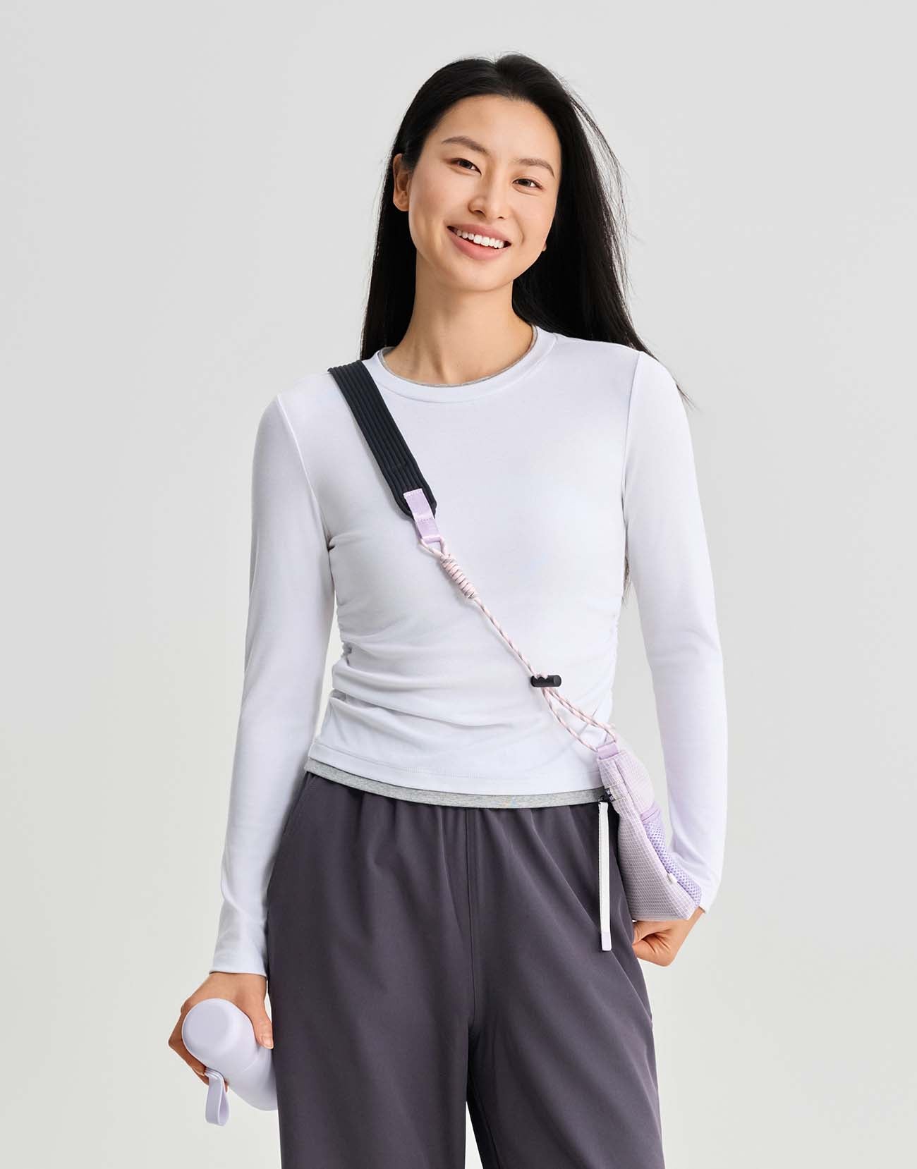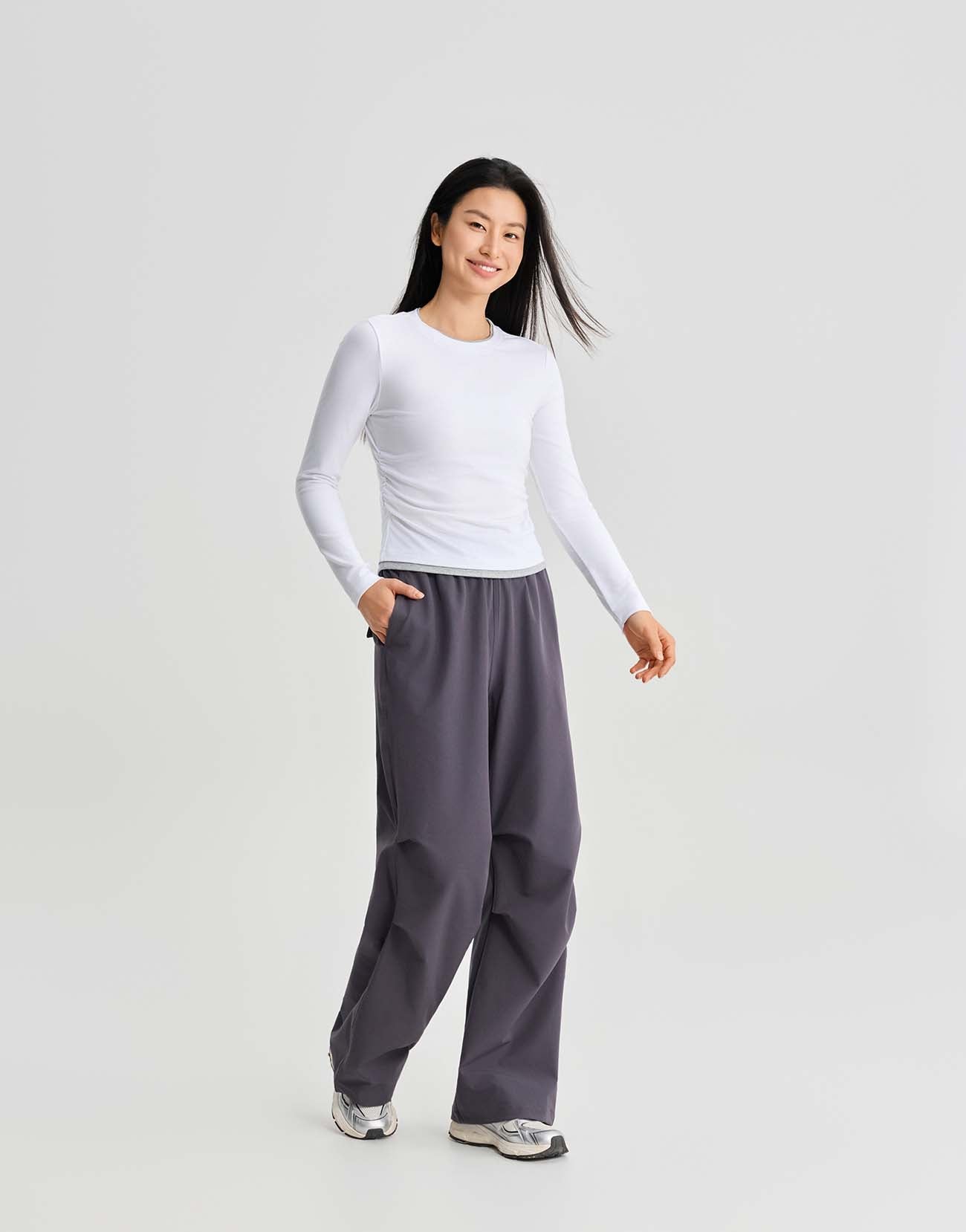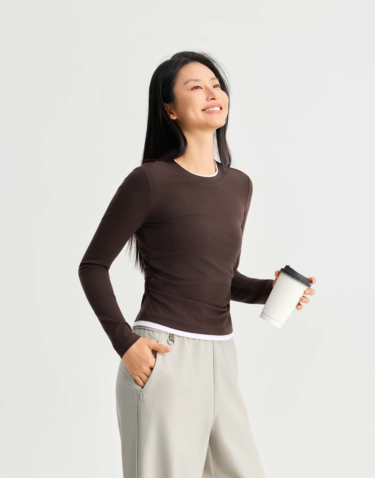 2 In 1 Gathered Waist Long Sleeve T-Shirts