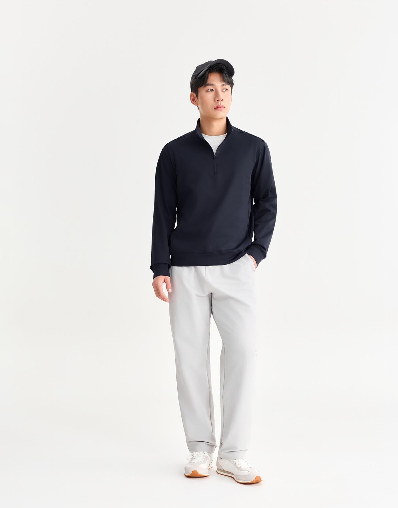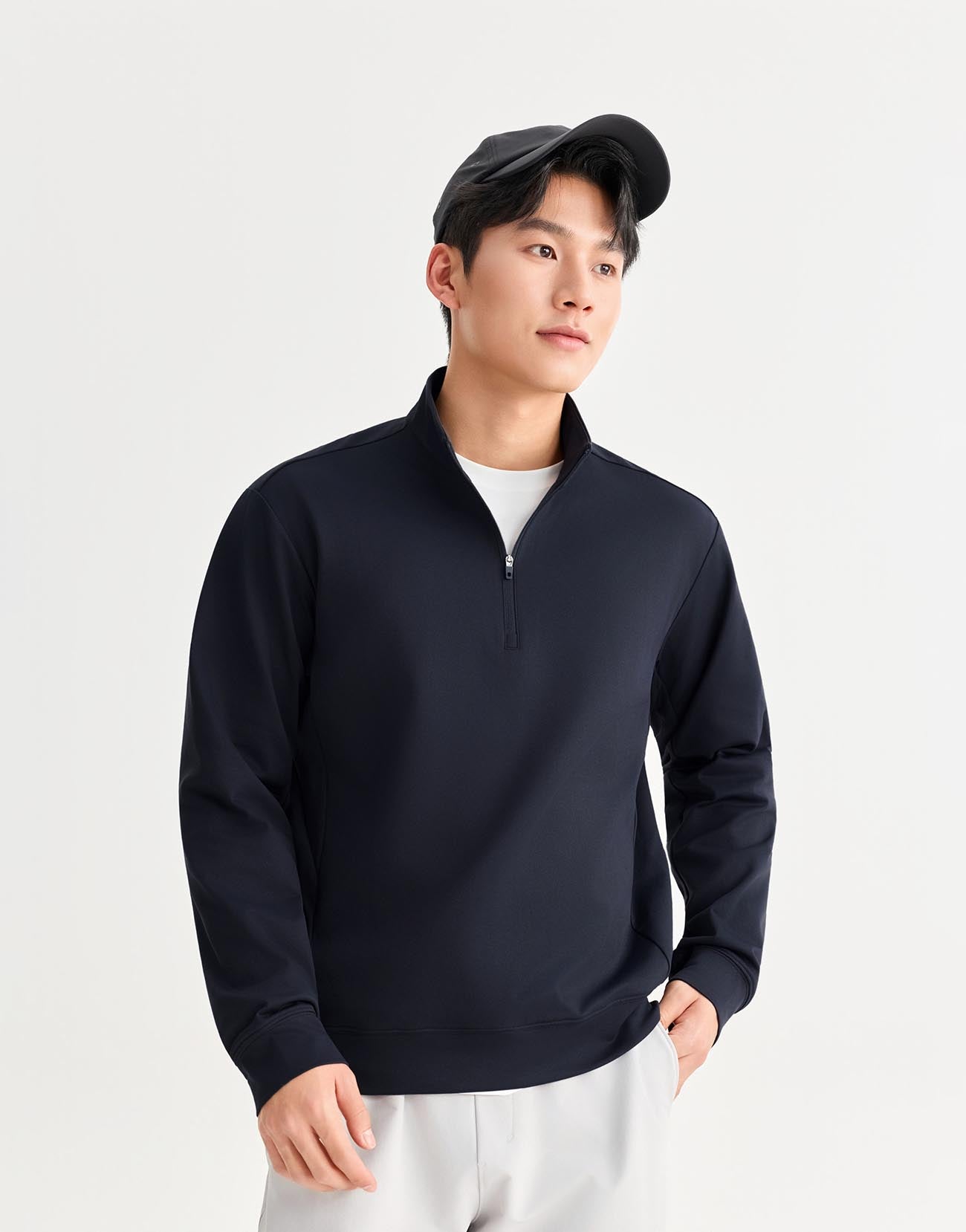 Half Zip Polo Neck Long Sleeve T-Shirts