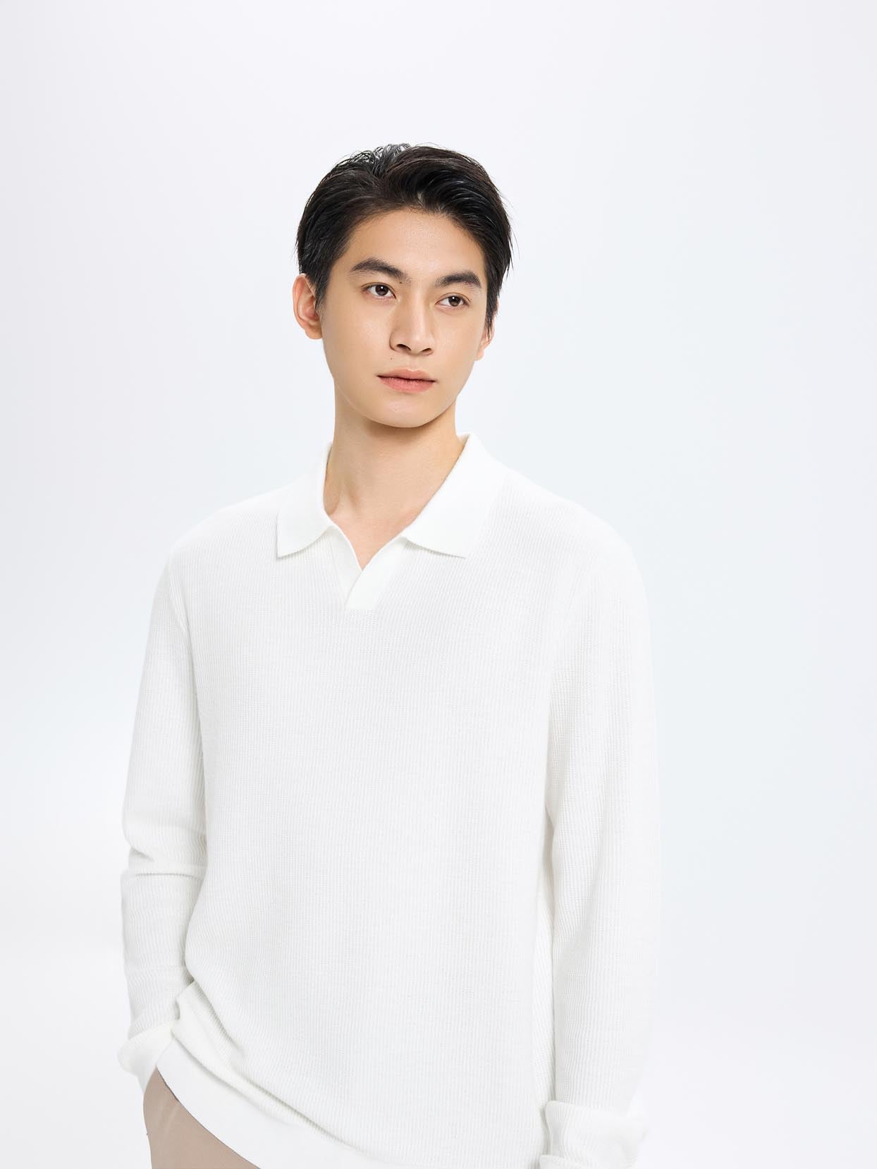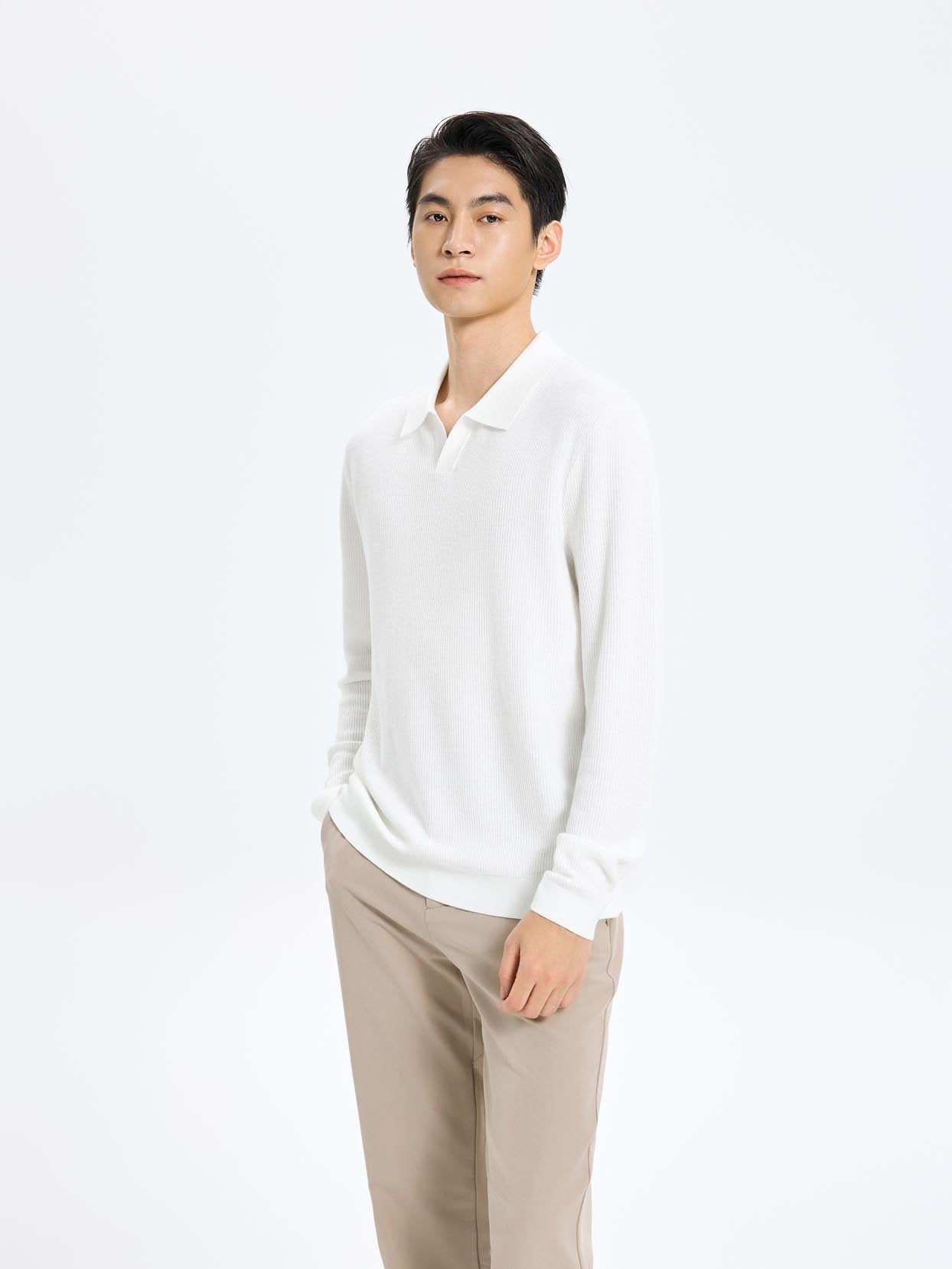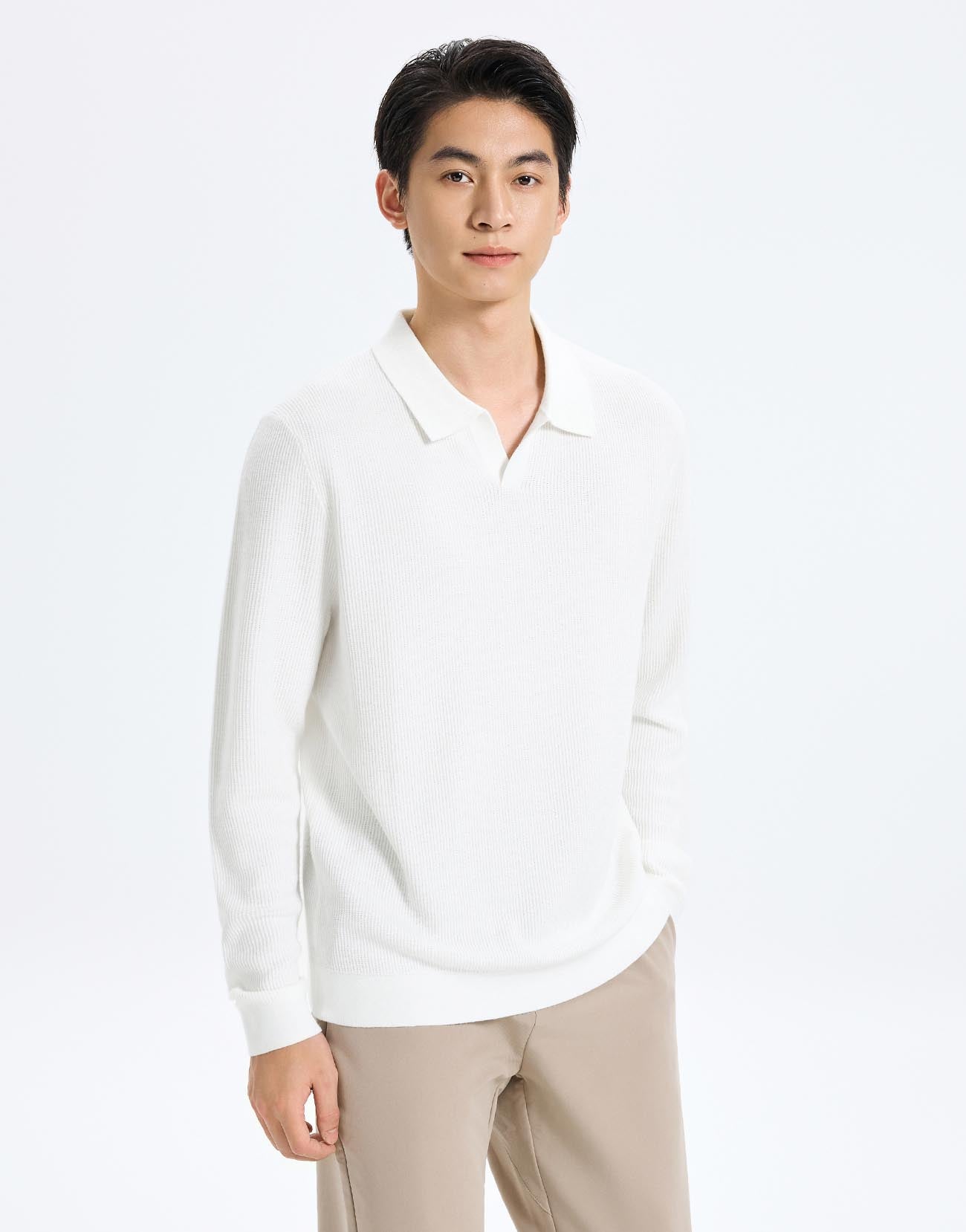 Polo Neck Long Sleeve Knitted T-Shirts