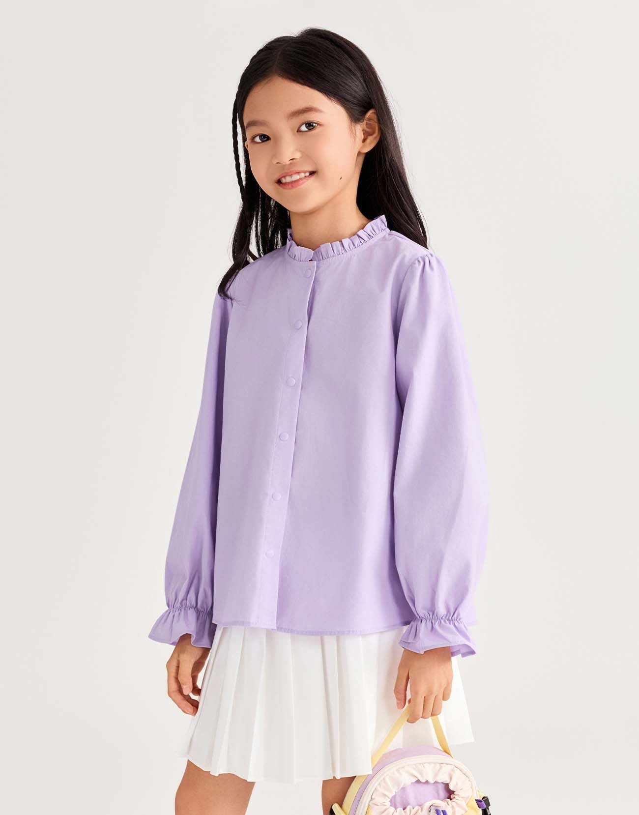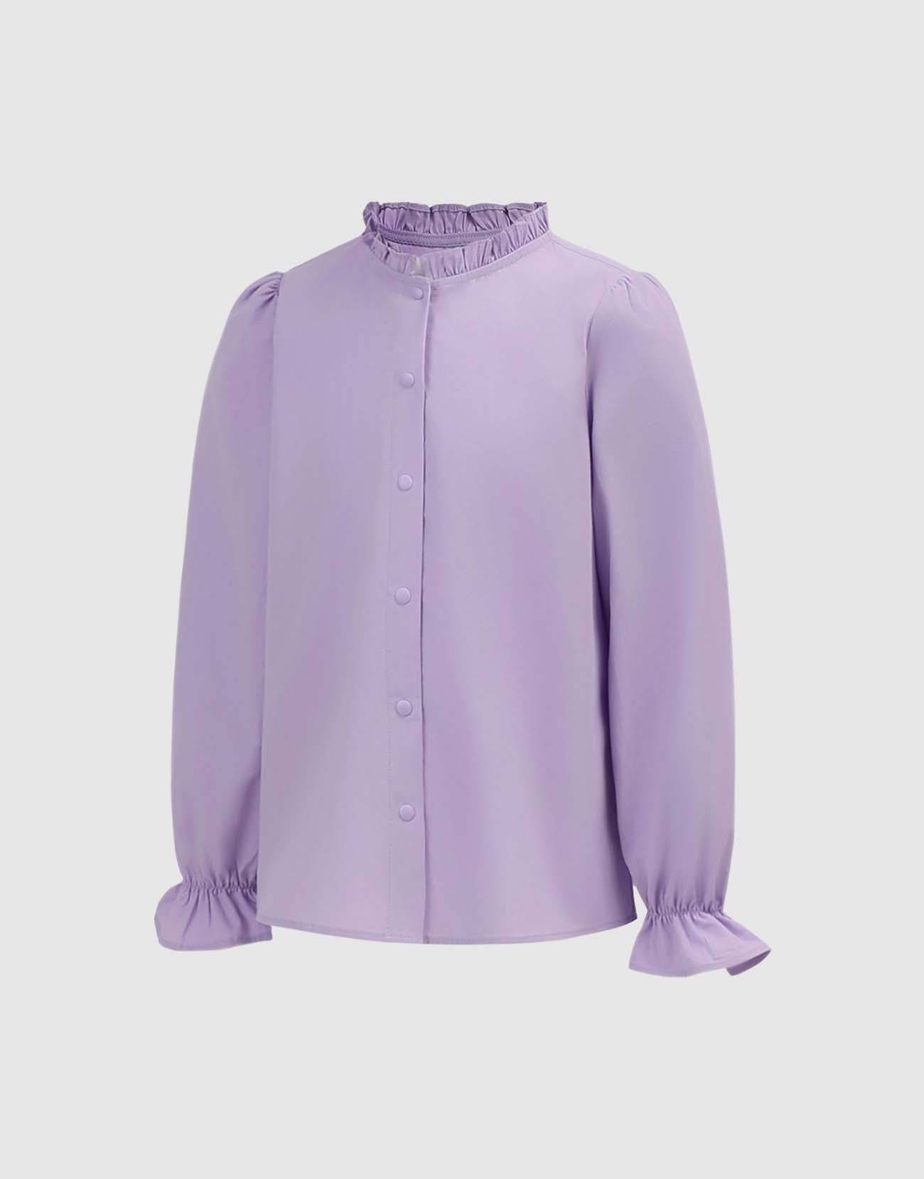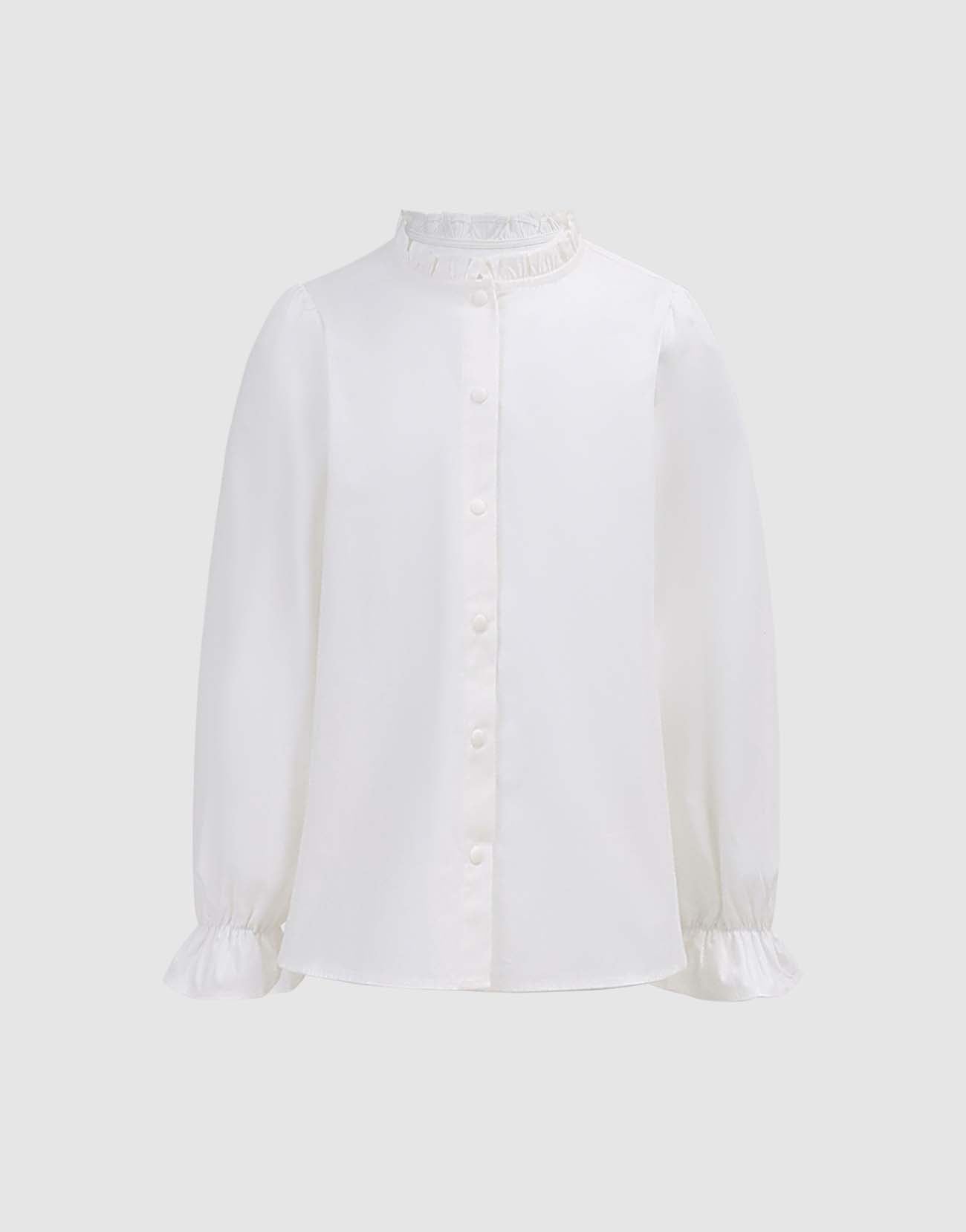 Ruffle Trim Mock Neck Blouse Shirts