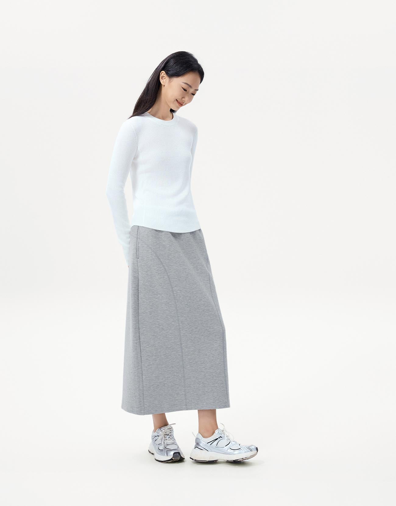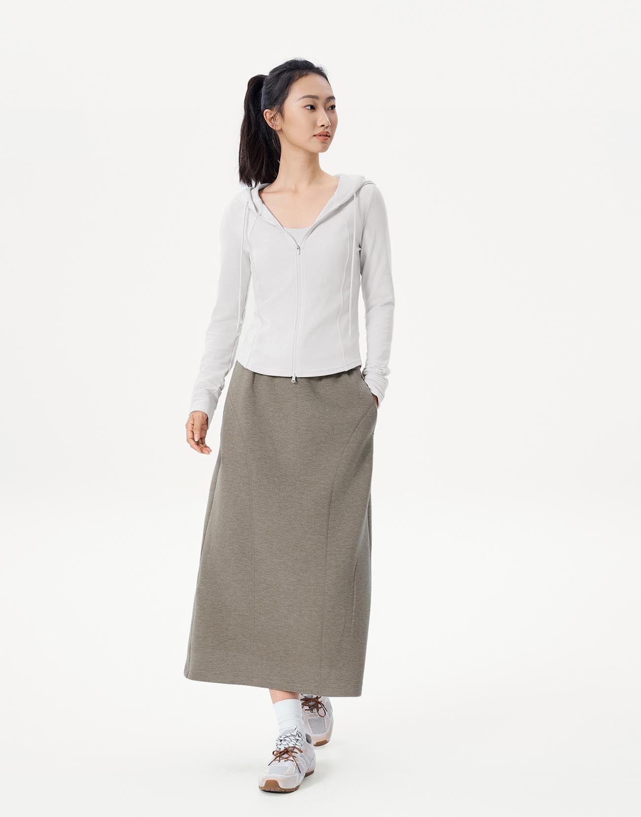 Stitch Detail Pull On Balloon Midi Skirts
